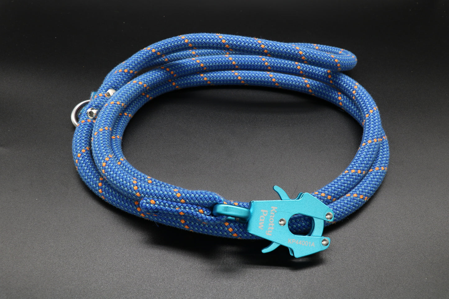 Blue/Orange Stripe - Signal Lead Upcycled Climbing Rope Dog Leash